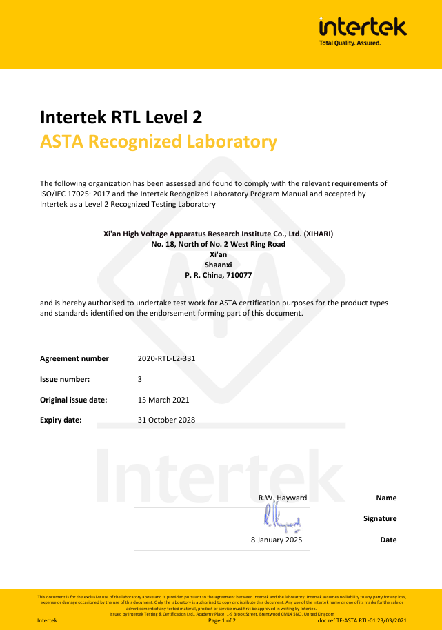 International recognition of the XIHARI test report
