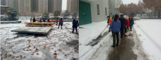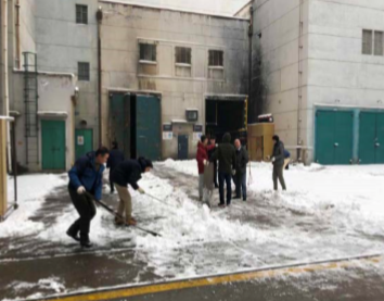 4 日一大早,我院党委委员、总经理王建生带着铁锹和扫帚开始清扫院区的积雪。在他的带动下我院安技保卫处、综合管理处、运营处及各个检测室的党员、团员们发挥先锋模范作用,按照应急预案积极自主自发义务清扫各自区域的积雪,在整个清扫过程中,同志们不畏严寒、挥舞着铁锹和扫帚,相互配合,体现了我院党员的凝聚力和战斗力。经过 2 个多小时的努力将主干道及各个试验厅的试品进场通道清理出来!确保了道路通畅,为职工出行,试品进场扫除了障碍。