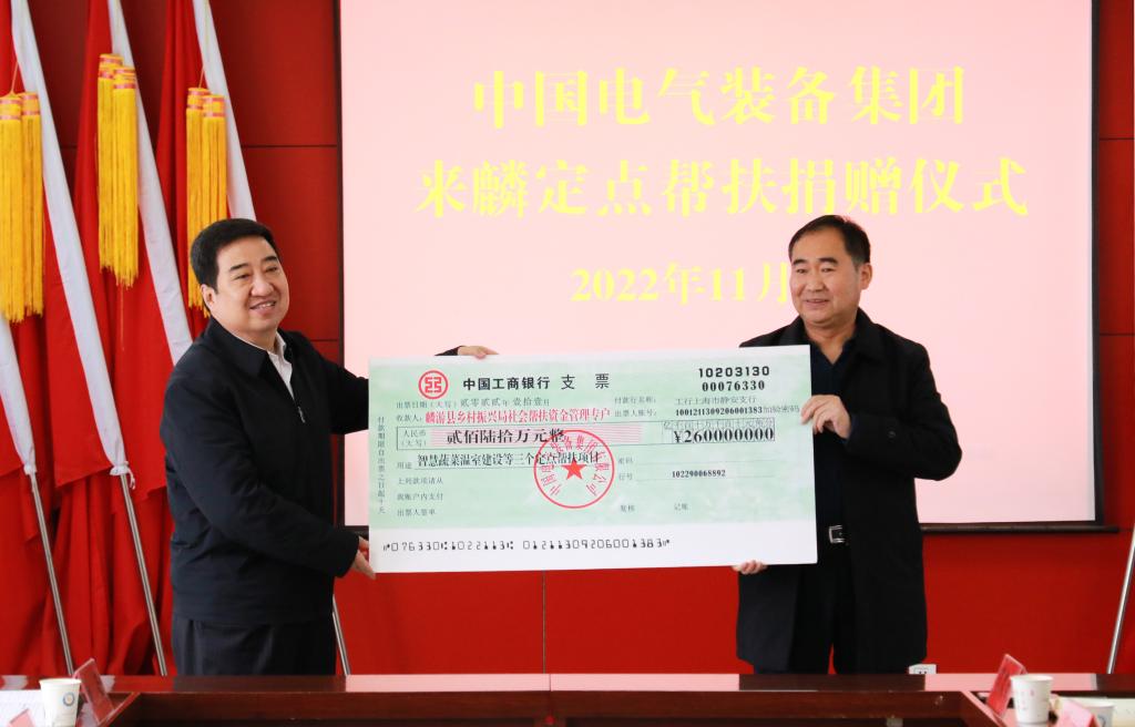 中国电气装备自2021年9月25日重组成立以来,作为一级央企接过了中国西电集团定点帮扶麟游县的接力棒,将坚持以习近平新时代中国特色社会主义思想为指导,深入学习宣传贯彻党的二十大精神,紧紧围绕党中央对乡村振兴工作提出的决策部署,立足当前、着眼未来,围绕“五大振兴”,与麟游县广大干部群众携手并进,以更坚强的决心、更明确的目标、更有力的举措,做好定点帮扶工作,交出人民满意答卷!