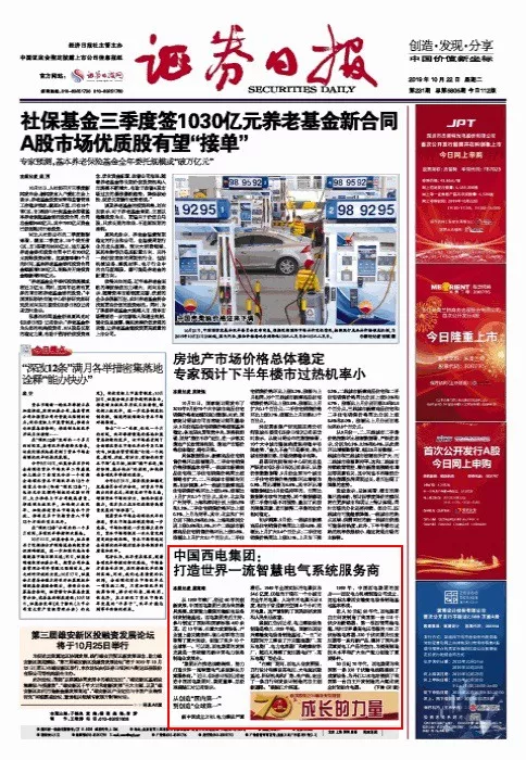 【按】10月22日,《证券日报》头版系统回顾了中国西电集团60年创新发展历程,聚焦集团公司积极推进转型升级和高质量发展,努力打造世界一流智慧电气系统解决方案服务商的生动实践。全文如下: