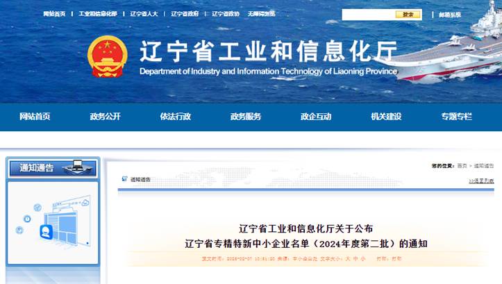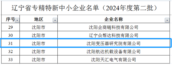 近日,从辽宁省工业和信息化厅公布了《辽宁省专精特新中小企业名单(2024年第二批)》,沈变院顺利通过评审,获得了辽宁省“专精特新”中小企业的称号。