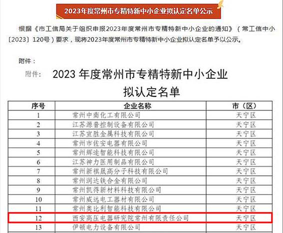 近日,常州市工信局发布《关于2023年度常州市“专精特新”中小企业拟认定名单的公示》,西高院常州公司顺利通过“2023年度常州市专精特新中小企业”认定。