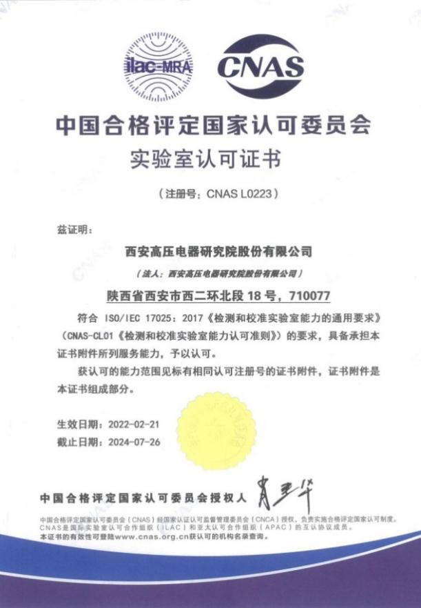西安高压电器研究院股份有限公司(以下简称西高院)成立于1958年,是我国“一五”计划期间156项重点建设工程之一。主要从事电气领域检测、计量技术服务、认证及技术咨询服务业务,开展相关技术研究、标准制修订及行业管理和服务工作。西高院是中国国家认证认可监督管理委员会授权的国家高压电器质量检验检测中心、国家绝缘子避雷器质量检验检测中心、国家电力电容器质量检验检测中心以及国家智能电气设备质量检验检测中心,是原机械工业第五计量测试中心站(西安)、法定授权机构以及CNAS认可的校准实验室,同时还是国家认监委批准的产品认证机构。西高院致力于打造以标准为引领,检验检测、计量、认证、技术服务为一体的国际先进智慧服务公众平台。