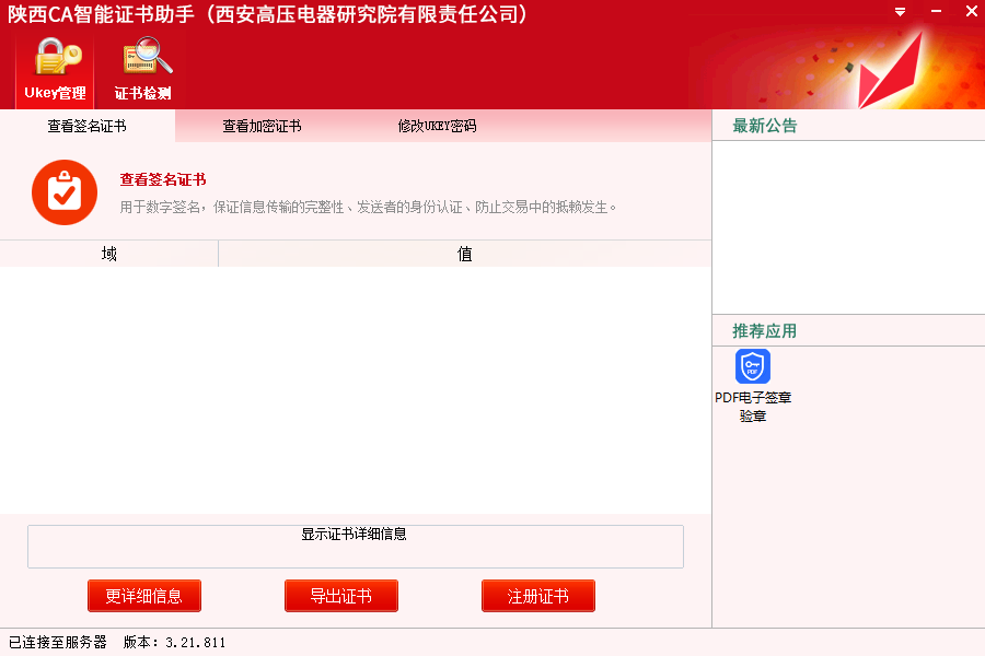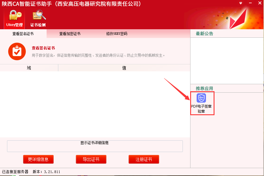 3)单击“推荐应用”PDF电子签章验签,打开验签工具。