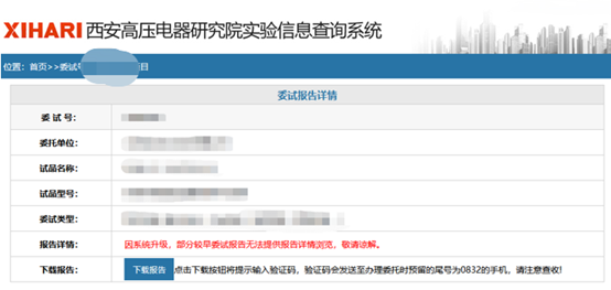 委试报告查询结果页面(注在SAP中完结的委试才可再此页面中查询到)