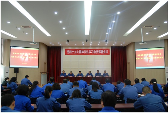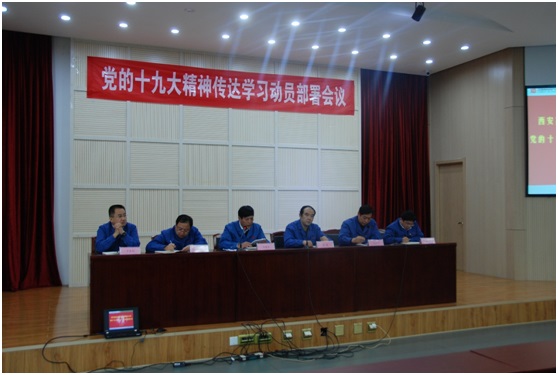 首先,党委书记班建同志传达了10月27日国务院国资委专题视频会和西电集团学习宣传贯彻党的十九大精神动员会精神。随后,带领全体参会人员学习了党的十九大报告,并对党的十九大精神传达学习工作进行了具体部署。
