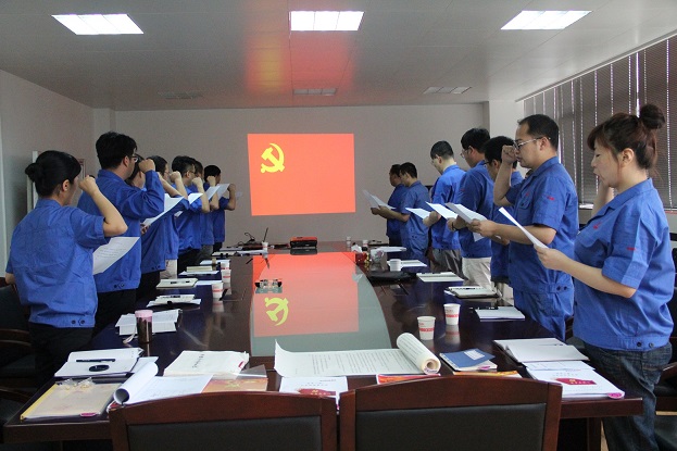 会上,与会党员全体起立,在庄严的党旗下集体重温入党誓词。随后,党办主任传达了集团党委《关于进一步做好“两学一做”教育通知》文件精神,对2季度各党支部工作开展情况进行全面总结。党委副书记许日为获得陕西省国资委“先进基层党组织”称号的实验一党支部进行授牌。