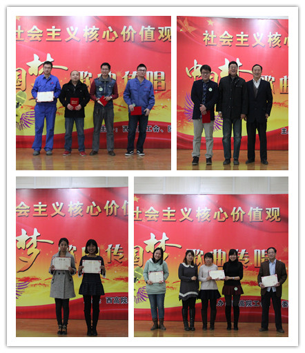 此次职工卡拉ok比赛活动共11组选手参加。一首诗歌朗诵《民族魂》将比赛拉开帷幕。参赛选手优美的歌声赢得了观众们的阵阵掌声,一曲《祖国之恋》把比赛推上了一个小高潮。“我和你心连心,同住地球村......”这声音是刘欢来了吗?还有那首激昂豪迈的《中国人》,气势磅礴的《海阔天空》,一首首悦耳动听的歌曲让观众在台下如痴如醉。最后由一首改编小苹果版的歌舞《歌唱社会主义核心价值观》结束了此次比赛。经过近两个小时的激烈竞争,最终赵亮和傅宏伟合唱的《我和你》获得一等奖,二等奖和三等奖分别由王昊、王小英、杨小春、李家梅、郭黎黎、万媛,李欣等7名职工获得。
