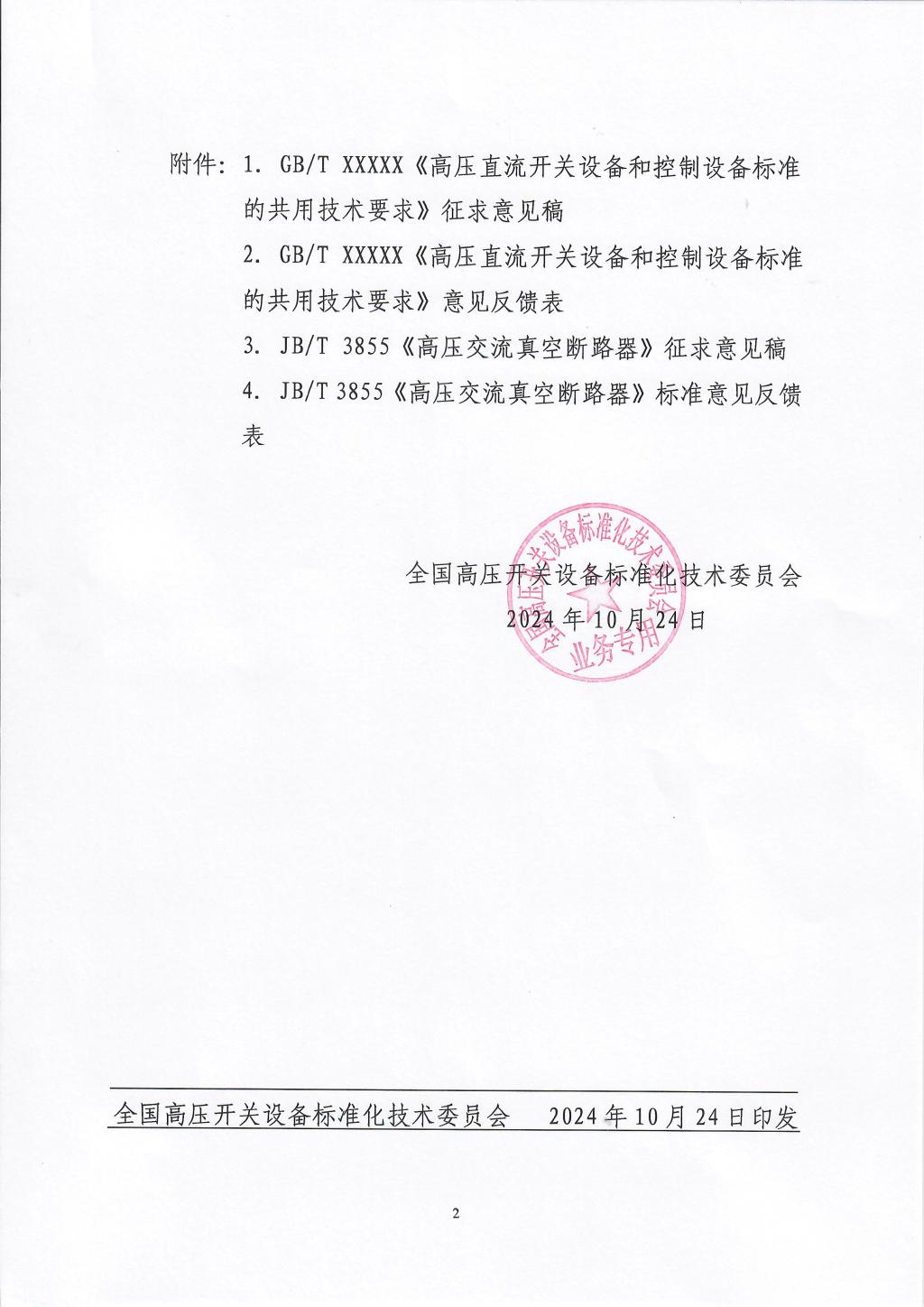 关于对 《高压直流开关设备和控制设备标准的共用技术要求》和 《高压交流真空断路器》征求意见的通知.pdf