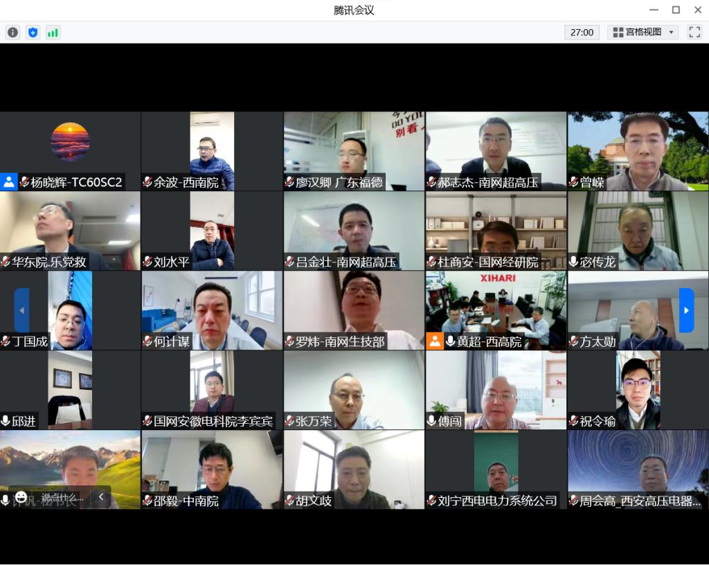 第三届全国高压直流输电设备标准化技术委员会(SAC/TC333)第四次全体委员会议于2022年11月30日在线上召开,参加会议的标委会委员、观察员、秘书处秘书及有关代表共65人,其中委员42人。会议由标委会秘书长许钒主持,标委会主任委员周会高、副主任委员曾嵘及张万荣等领导出席了会议正副主任委员做专题讲话。