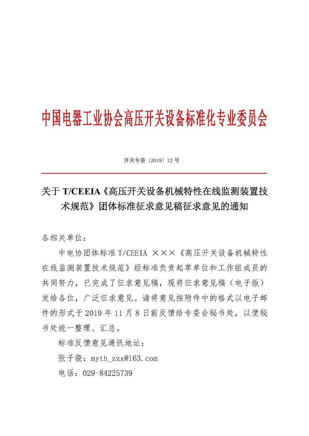 关于T/CEEIA《高压开关设备机械特性在线监测装置技术规范》团体标准征求意见稿征求意见的通知