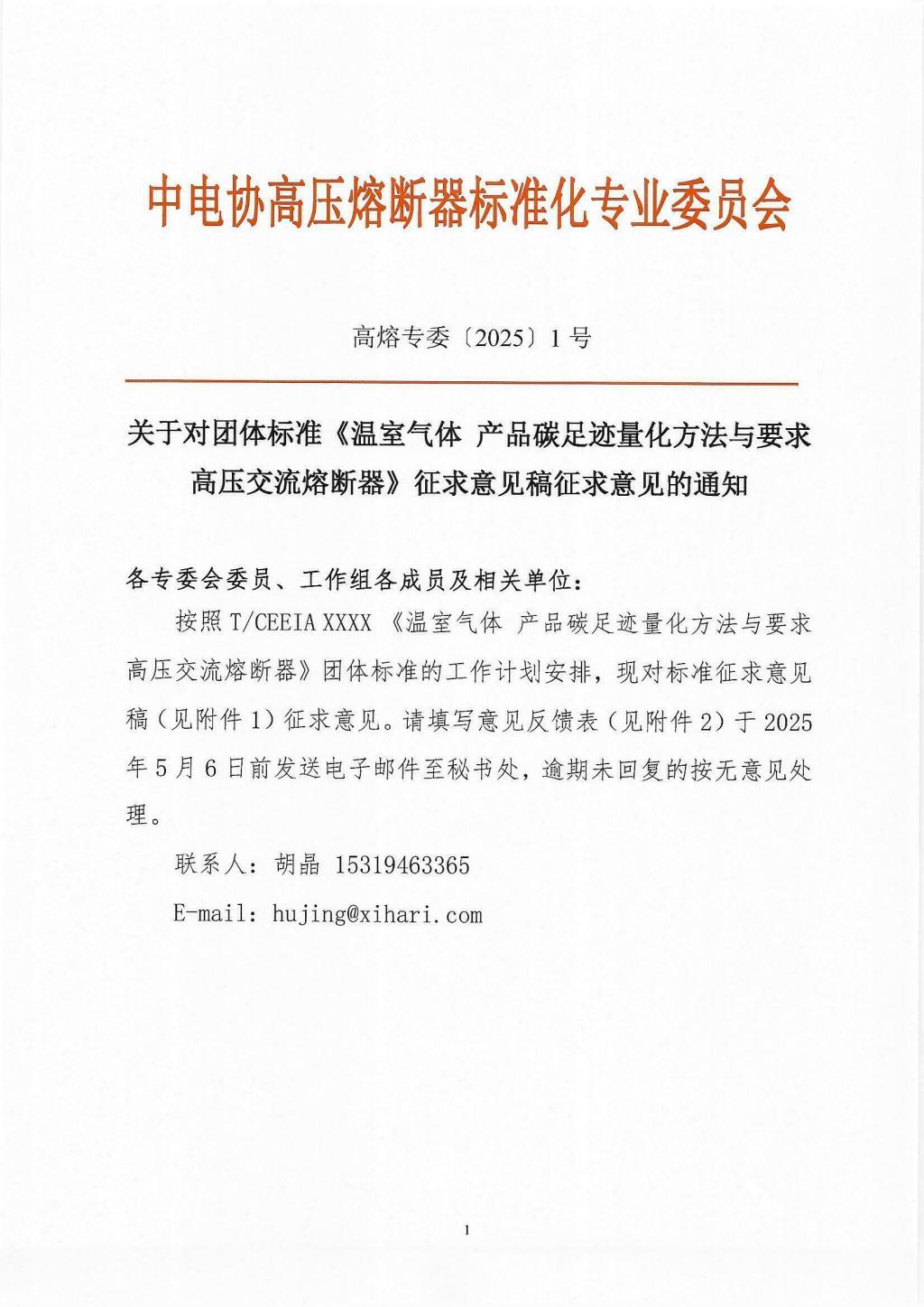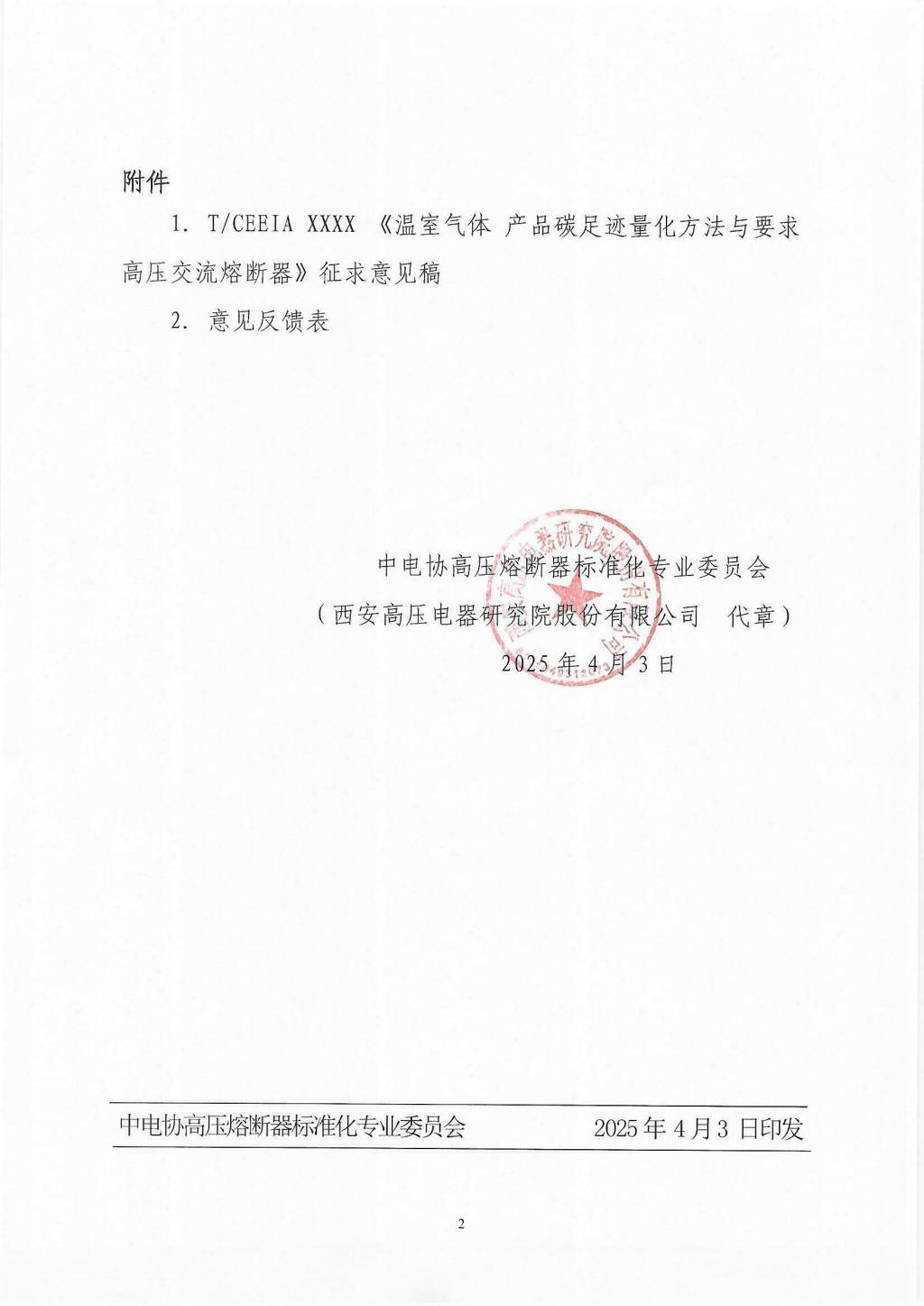 关于对团体标准《温室气体 产品碳足迹量化方法与要求 高压交流熔断器》征求意见稿征求意见的通知