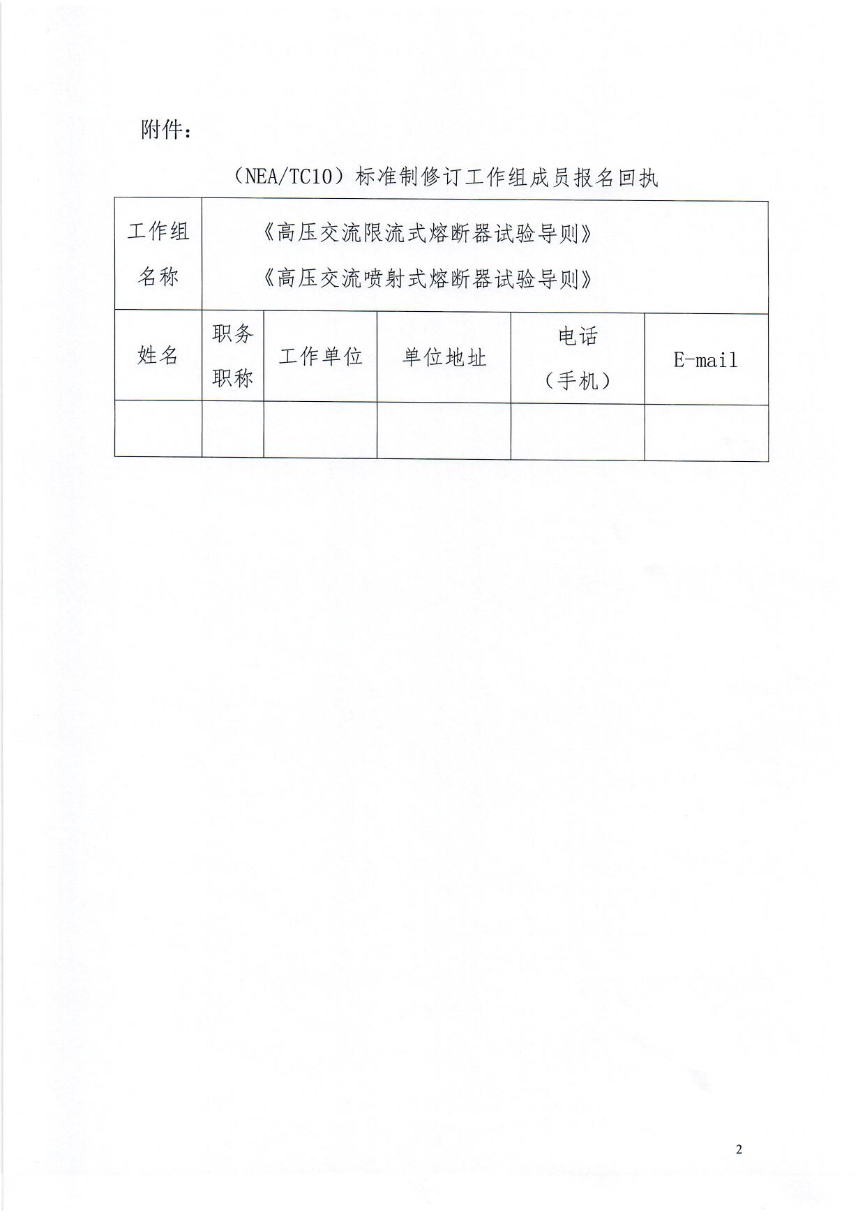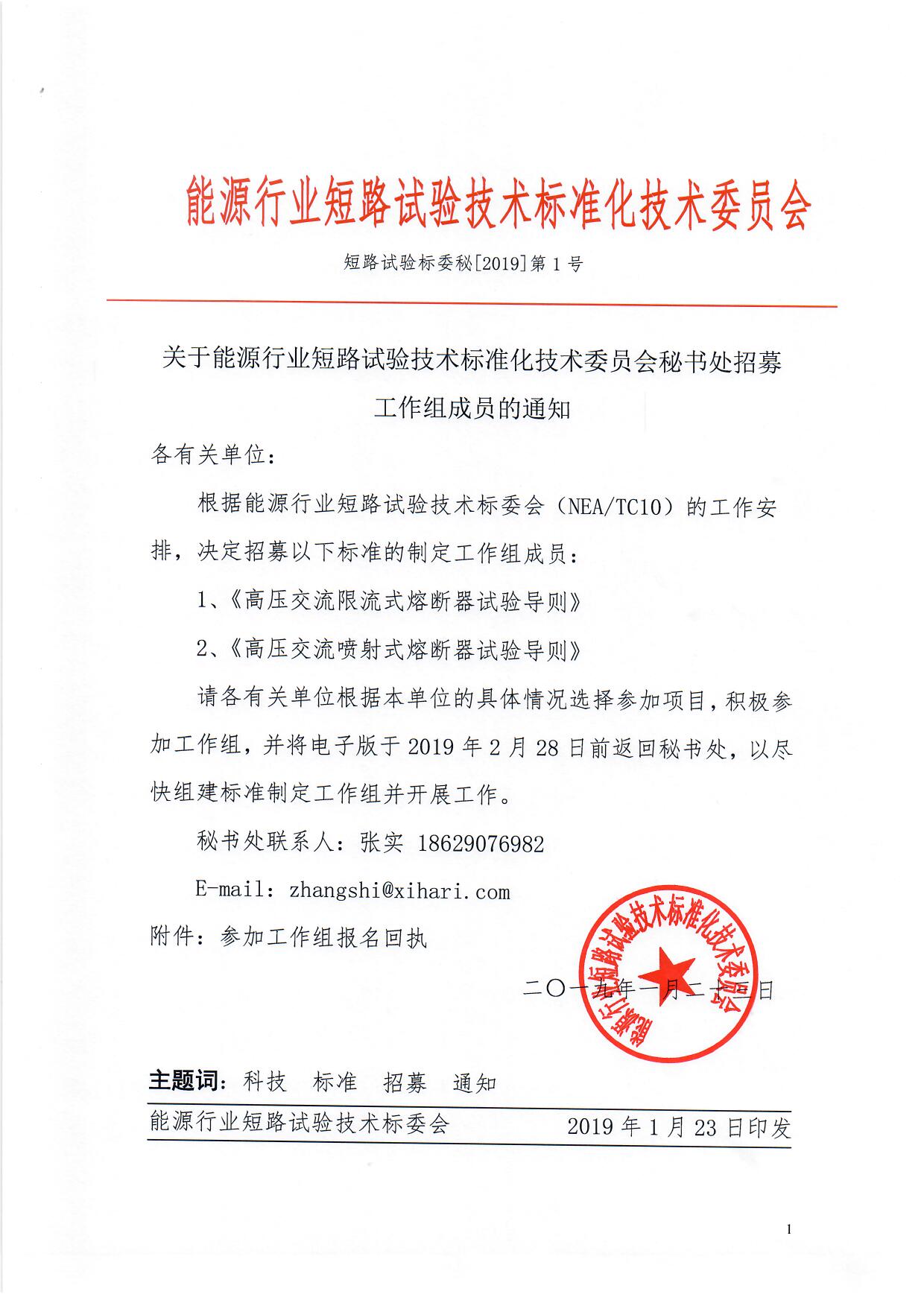 能源行业短路试验技术标委会2019年度招募工作组成员
