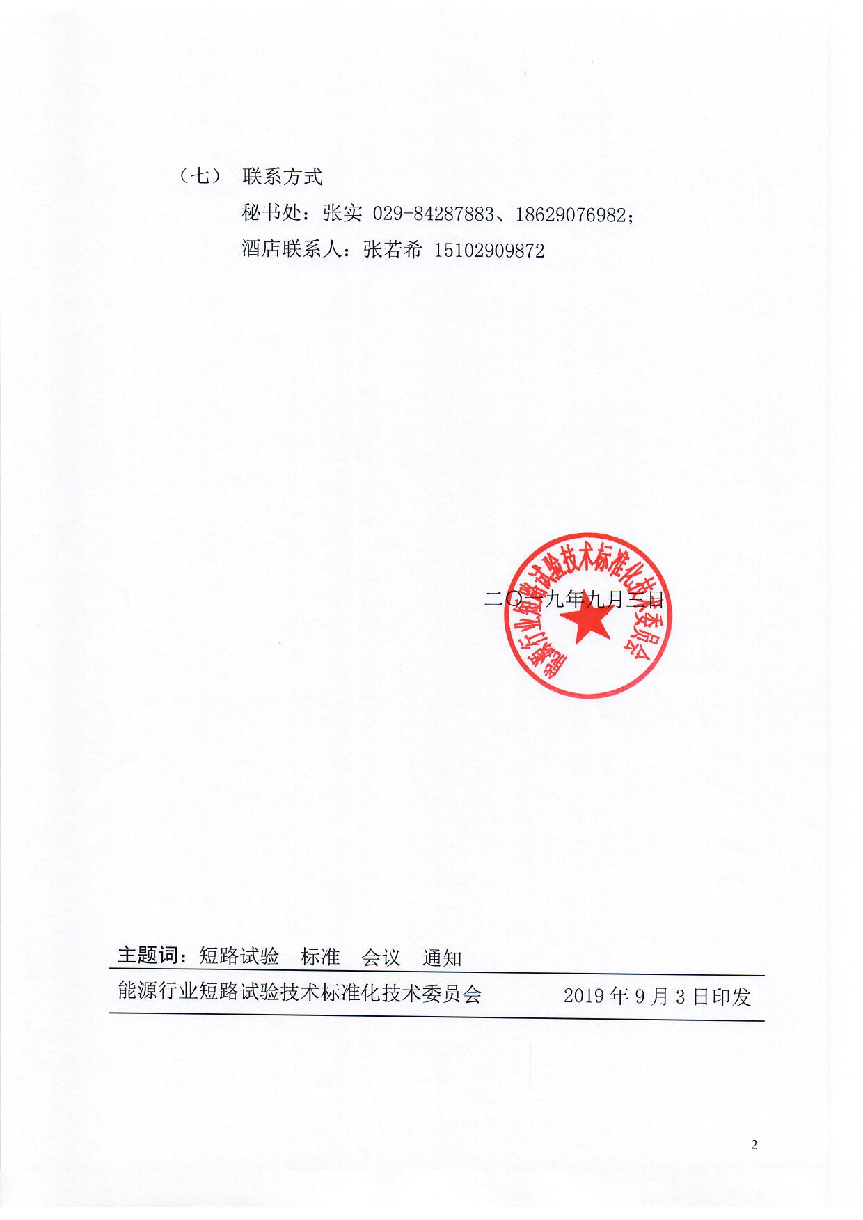 关于能源行业短路试验技术标委会2020年招募工作组成员的通知