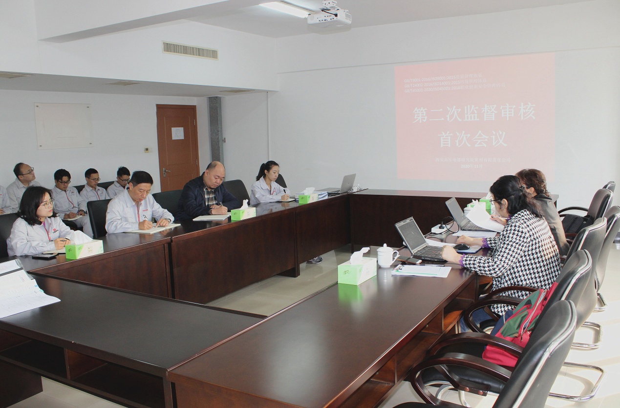 三体系外审于11月2日上午召开第一次会议,审核组专家、西高院常州公司经理层、各部门负责人及业务责任人参加会议。最高管理者代表、西高院常州公司副经理李江首先对审核组专家的到来表示欢迎,并就西高院常州公司2019年8月至今管理体系的运行情况作详细介绍,同时要求各部门及相关负责人要认真积极配合审核组的工作,以审核为契机来发现问题,推动管理体系工作进一步提高,提升企业各方面管理水平。