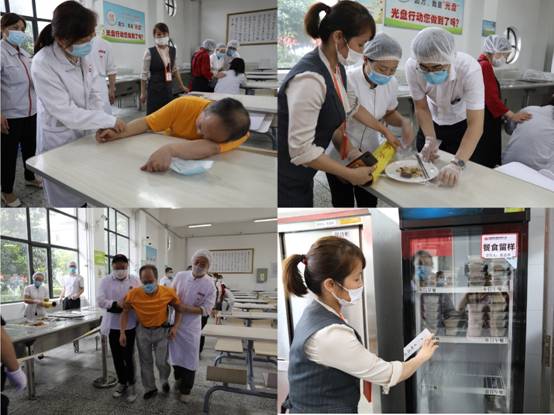 演练严格按照应急方案流程,模拟有2名员工就餐后,感觉身体不适,出现恶心、呕吐等食物中毒情况,餐厅管理人员及时处置,向上级报告,并指导餐厅启动安全卫生应急响应程序,拨打“120”急救电话,有序组织人员将中毒员工送往医院救治,现场警戒组配合封锁就餐现场。按程序封存登记就餐食品及食品留样,并将食品送往专业食品安检部门化验。随后,工会组织部分职工代表对餐厅的食品卫生、现场管理等内容进行了专门监督检查,提出了改进意见。