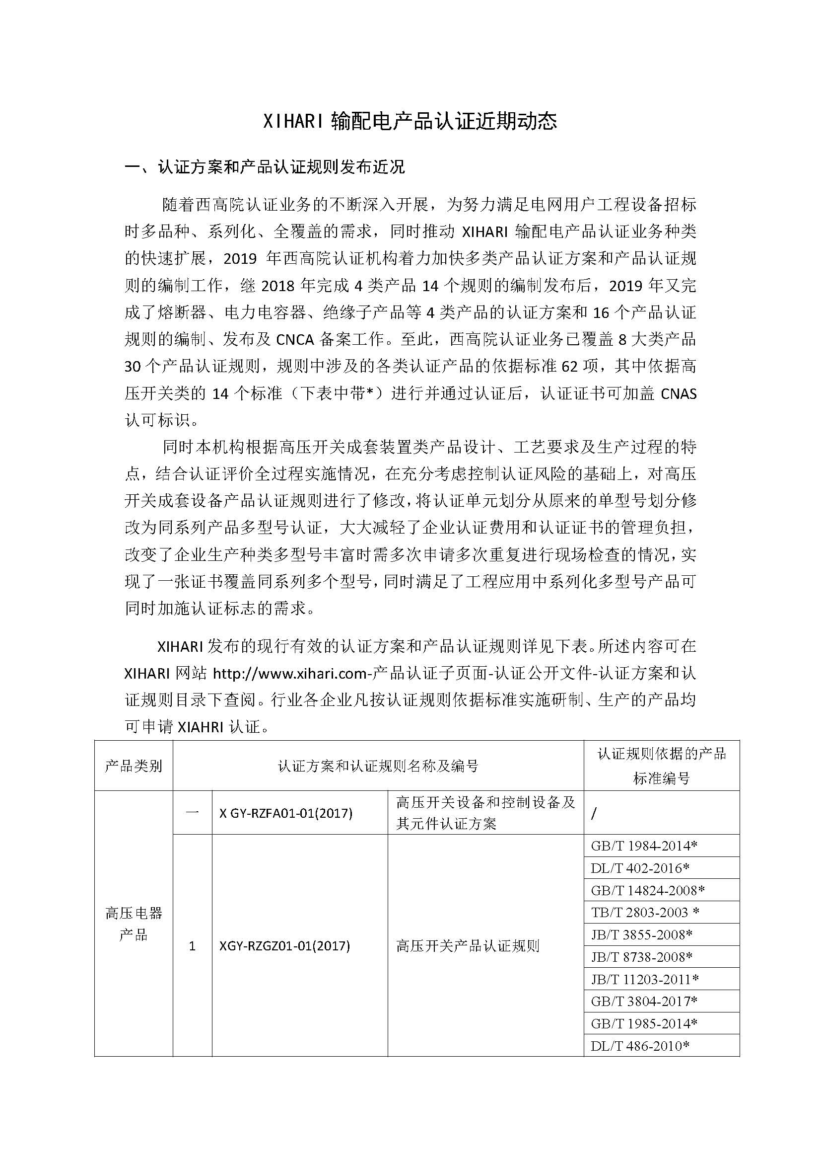 XIHARI输配电产品认证近期动态