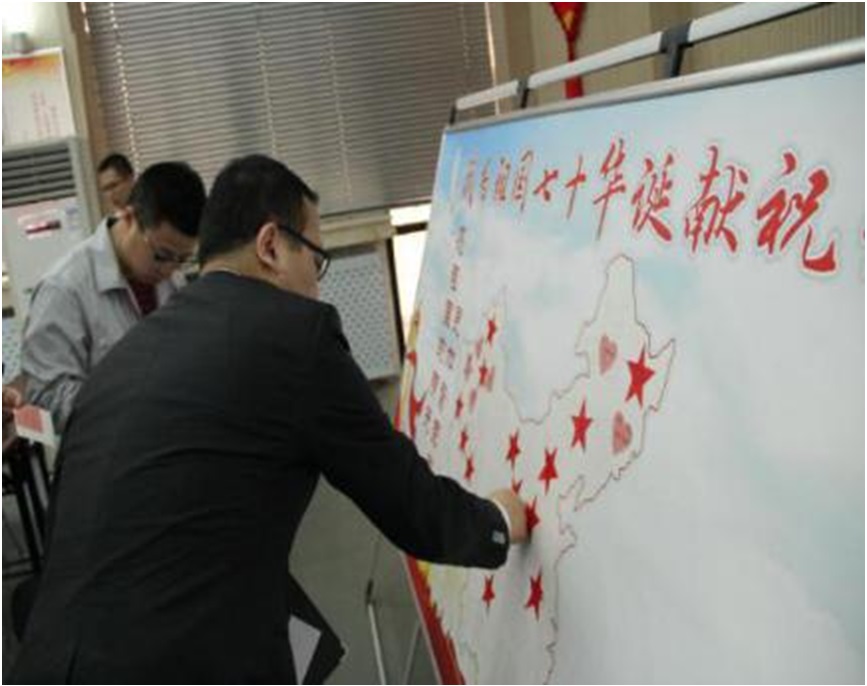 音乐响起,全体起立齐声高歌--《没有共产党就没有新中国》,熟悉的旋律让我们脑海里瞬间呈现出革命先辈,抛头颅,洒热血的画面,革命先辈崇高的爱国情怀和革命精神我们将永远铭记。请全体起立迎团旗,全体新老团员面向团旗,高举右拳,以最宏亮的声音庄严宣誓,重温入团誓言。感受楷模精神力量,聆听《为了光明的约定》--我们身边许党报国的杰出楷模,来自西电西变的优秀共产党员郭强的故事,西电西变宣讲团队五位同志怀着对郭强同志的无限敬仰和怀念,饱含深情的讲述了郭强同志坚持不懈奋斗在生产一线,平凡的人不平凡的感人事迹,弘扬郭强同志对党忠诚、担当作为、干事创业的精神。伴随着悠扬抒情的音乐,激情昂扬的诗朗诵--《放飞中国梦》,展现当代青年爱国爱党的青春风貌,激励青年担当实现伟大复兴中国梦的重任。最后,献祝福环节,现场所有人将写着对伟大祖国70岁生日的祝福寄语和青春宣言的便签贴,粘贴在“我为祖国七十华诞献祝福”和“五四运动100周年青春宣言”留言版上。