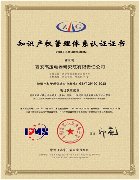2017年12月25日,我院顺利通过GB/T29490-2013知识产权管理体系认证并获得证书。